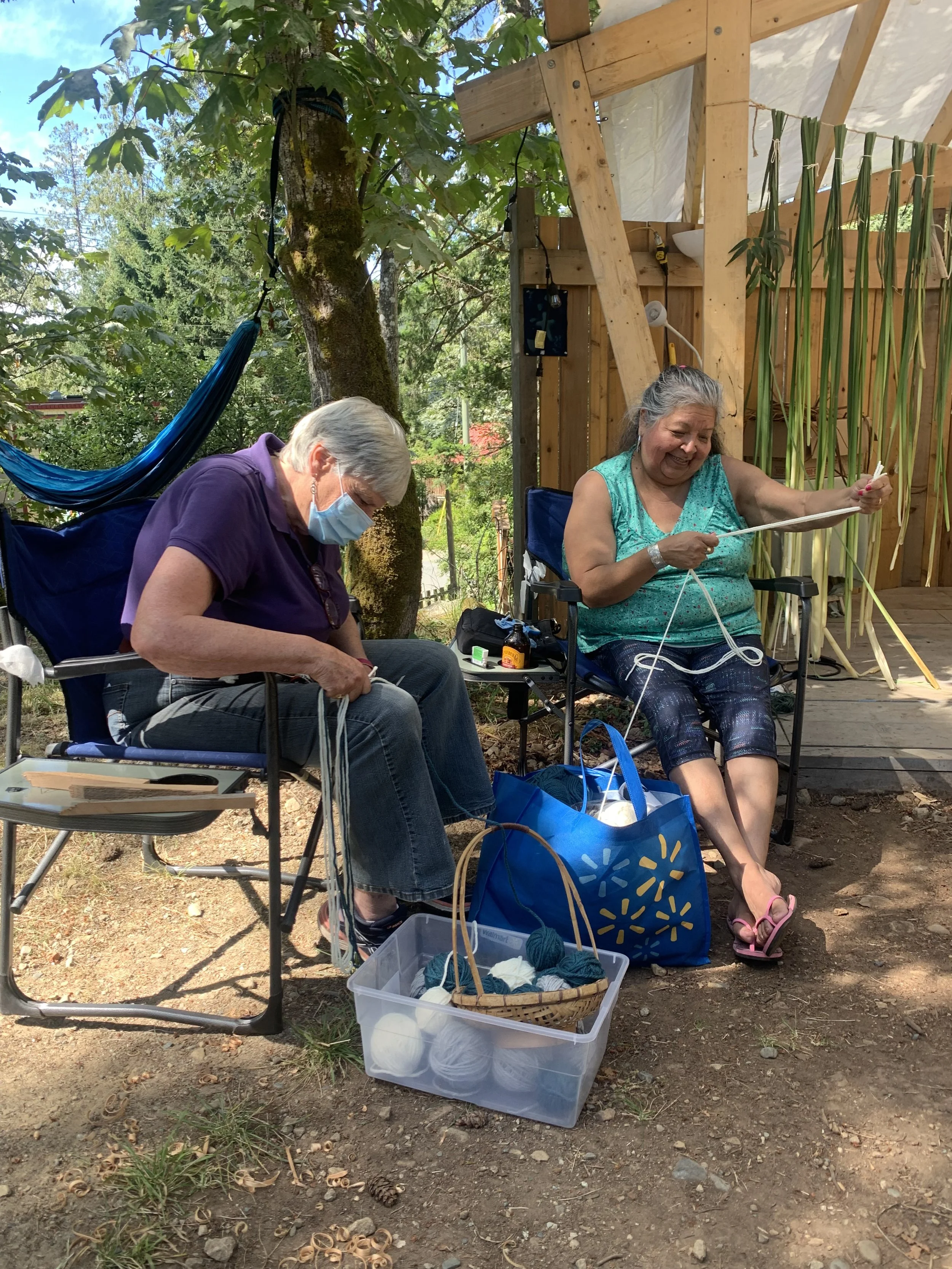 During the installation of the exhibition, the project team led by Karen Charlie, Richard Charlie, and Rosemary Georgeson connected with family and members of the wider Galiano community. Together we harvested bullrushes and learned to weave them; we wove gifts for the exhibition opening; and we carved and painted cedar paddles for exhibition the opening song. Visitors to the exhibition were invited to continue to work on the weavings with support from the Yellowhouse Art Centre attendants.